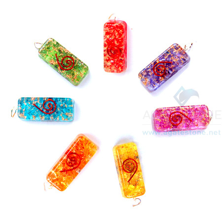 Chakra Orgone Onyx Long Rectangle Pendant Set