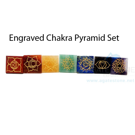 Product Name:- Gemstone Engraved Chakra Pyramid Set