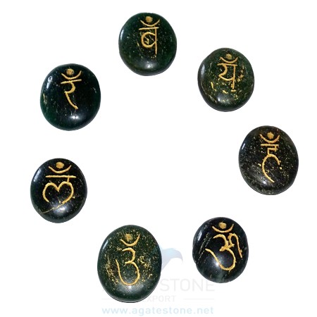 Green Mica Engraved Sanskrit Disc Chakra Set